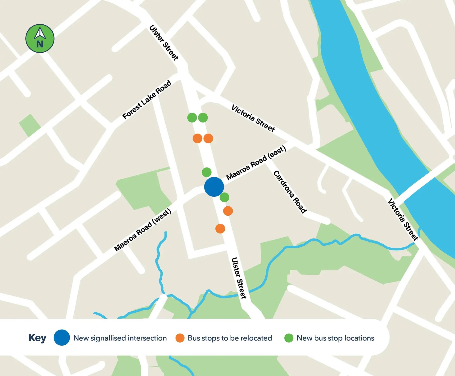 🚦 Hamilton City Council is proposing new traffic signals at the intersection of Ulster Street and Maeroa Road to reduce crashes and near misses. The preferred design, now open for public feedback, includes signalising the Ulster Street/Maeroa Road intersection, pedestrian crossing signals, and relocating some bus stops. Read.