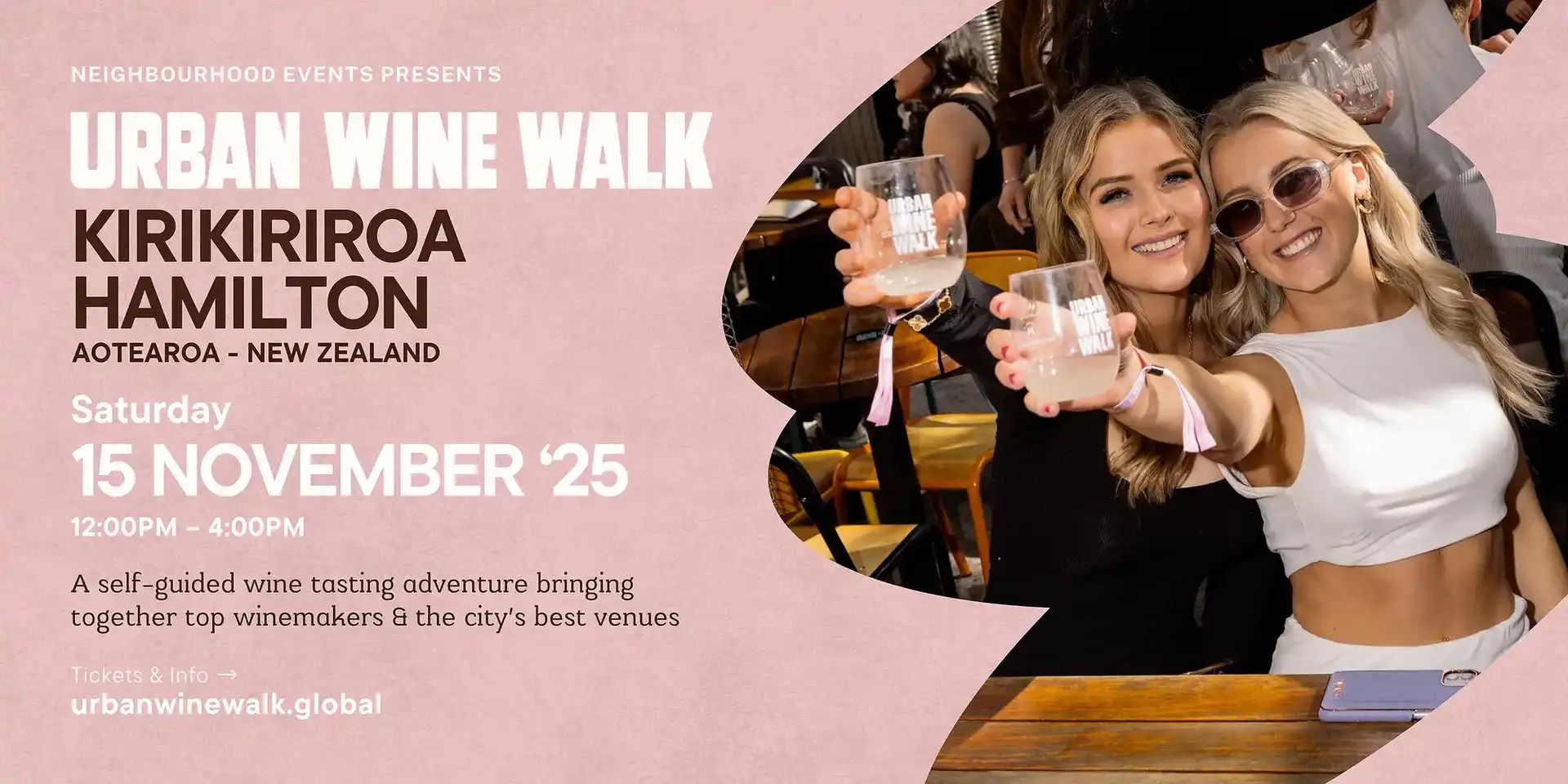 Urban Wine Walk | Sat 15th 12:00 - 4:00pm at The Local Taphouse. The streets and laneways of Kirikiriroa Hamilton are set to come alive this spring as a line-up of venues each play host to an incredible winemaker, who'll be there ready to pour and chat you through an unforgettable afternoon. Tickets.