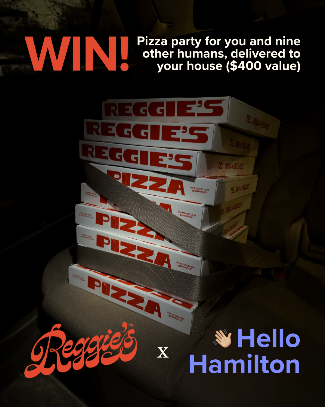 Our friends at Reggie's are shouting a huge pizza party for a lucky Hello Hamilton follower and their crew. We're talking fresh, handmade, cheesy, saucy goodness delivered straight to your place. How good! 🍕